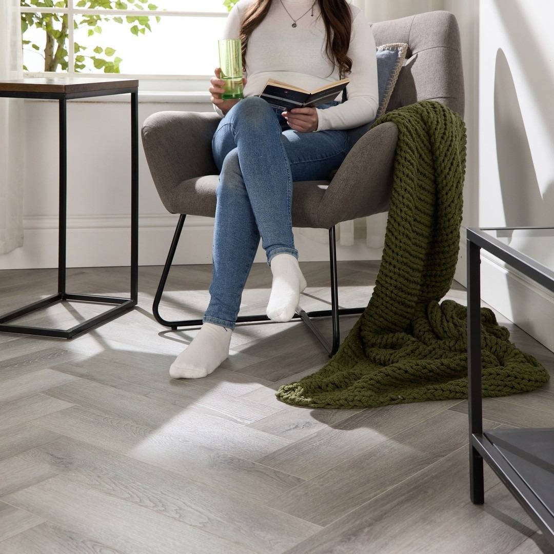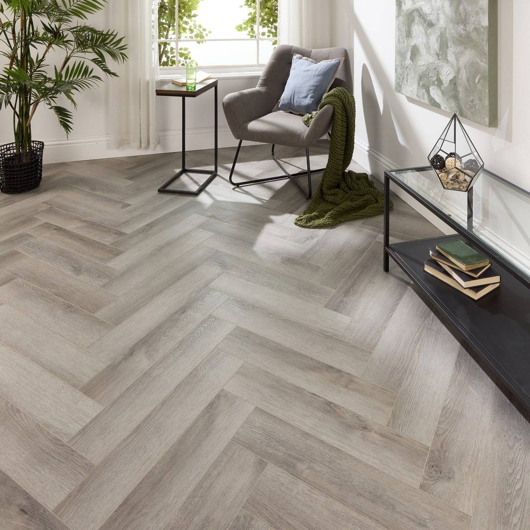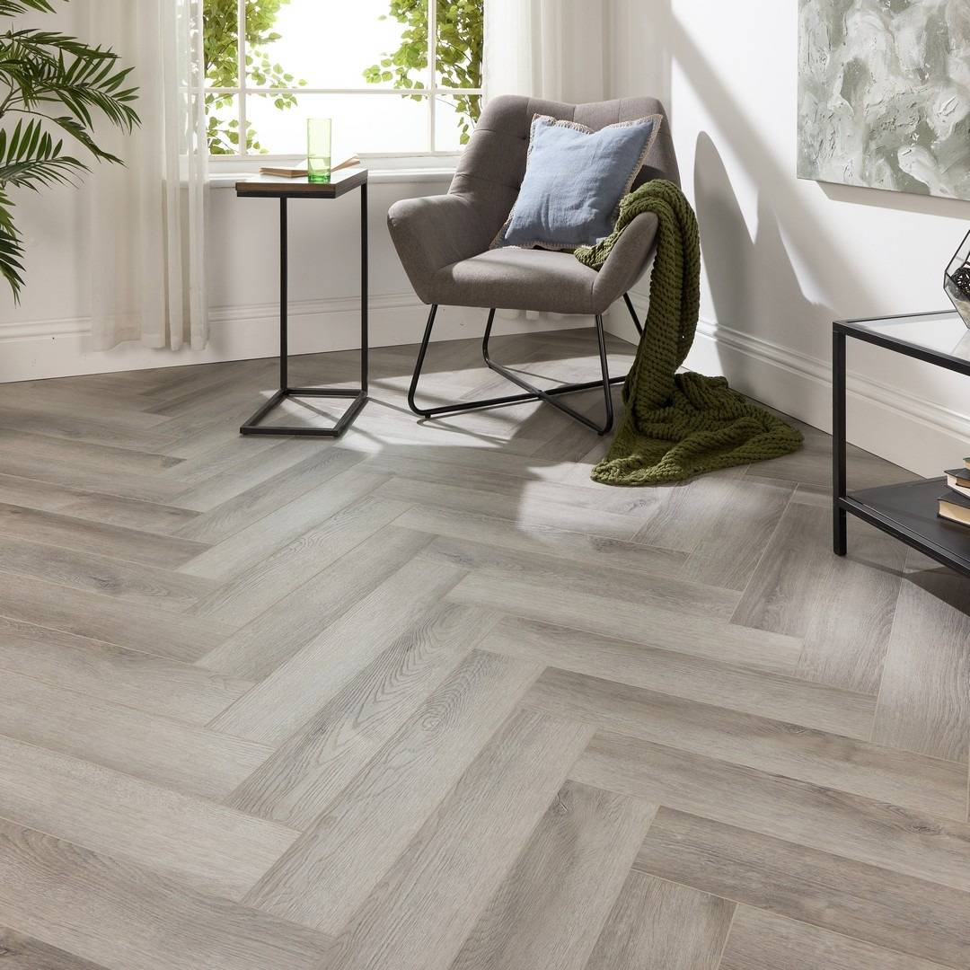 Aqua Plank Ingot Grey Herringbone Click Vinyl Flooring, 6.5mm with built in underlayAdditional Information