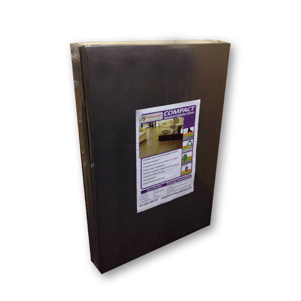 Compact Board Underlay System EWA22. Heavy duty polystyrene underlay, suitable for use with all Laminate and Engineered wood floors. This is an ideal underlay for all types of subfloors as it has numerous attributes; its light weight ensures it is easy to handle and it will help level out, slightly uneven floors. The product is dust and fibre free ensuring it is good for the environment and anti-allergenic. Due to the construction of the board it has a high weight resistance, this also gives it a 2.2 TOG rating which is ideal for insulating cold rooms. Compact board has a very good sound absorption rate to help lower the effects of reflective sound. When used on concrete floors we suggest that the joints are taped with our vapour barrier tape.