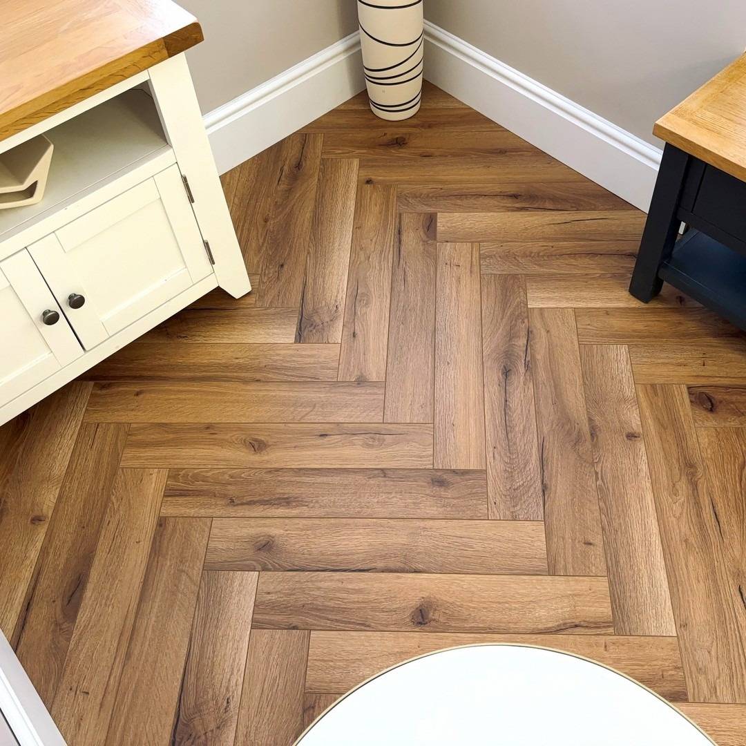 Embrace Herringbone Laminate Flooring Traditional Oak 12mm