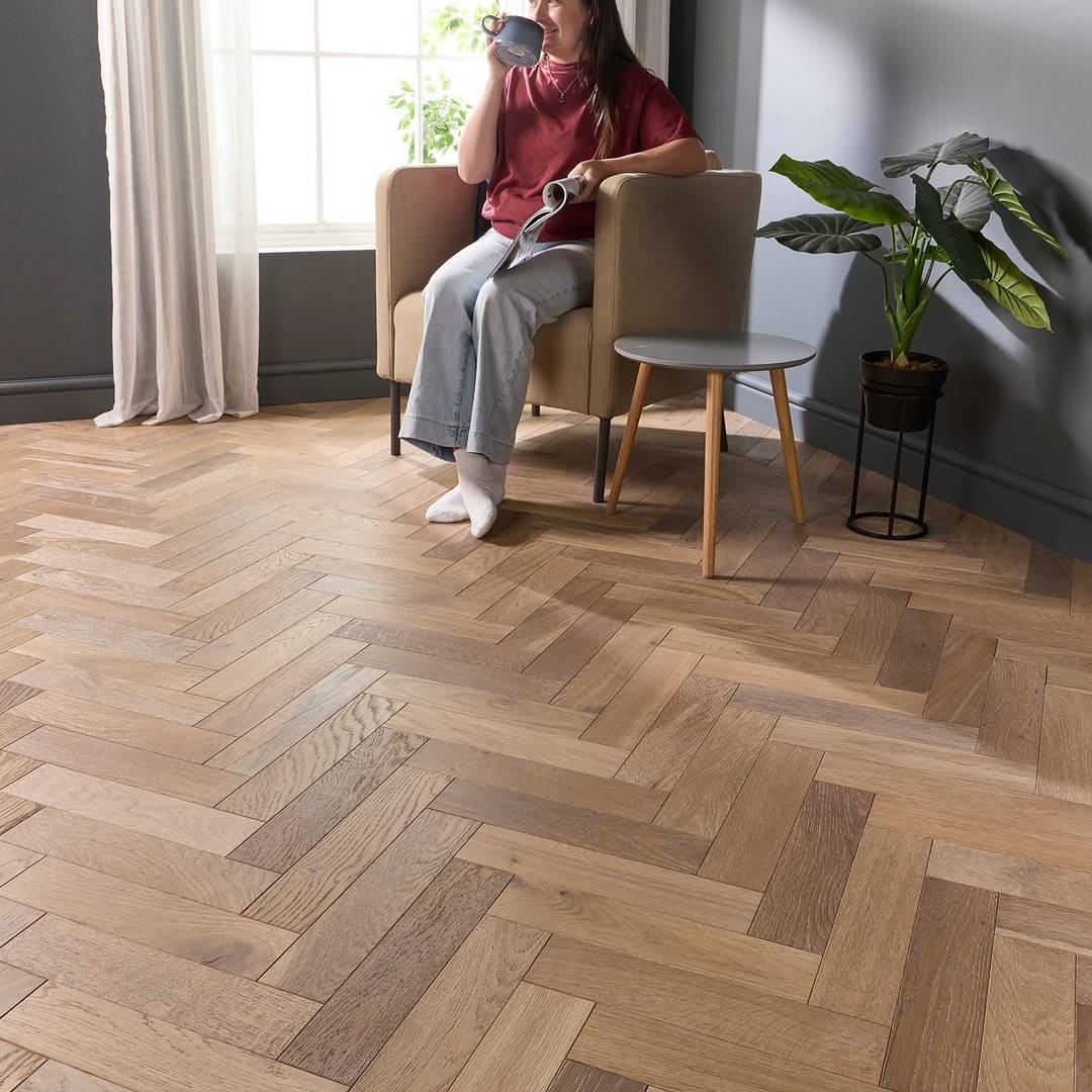 How to install Herringbone Parquet 18mm Engineered Wood Flooring Smoke White Brushed Oiled