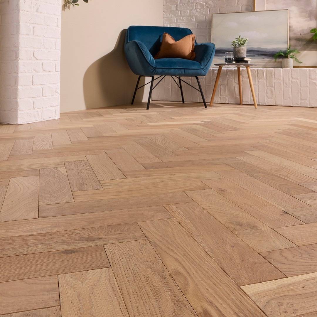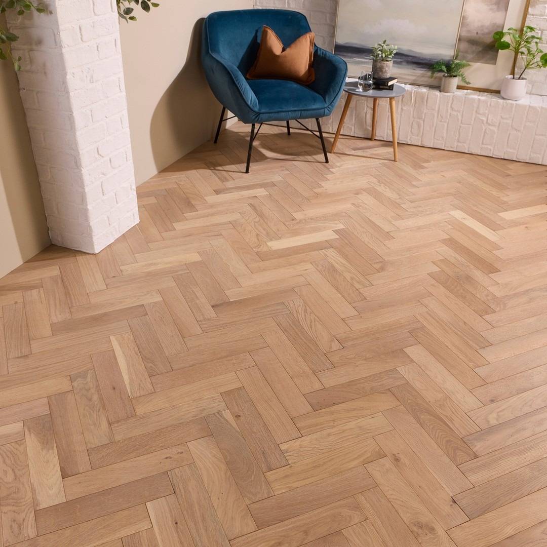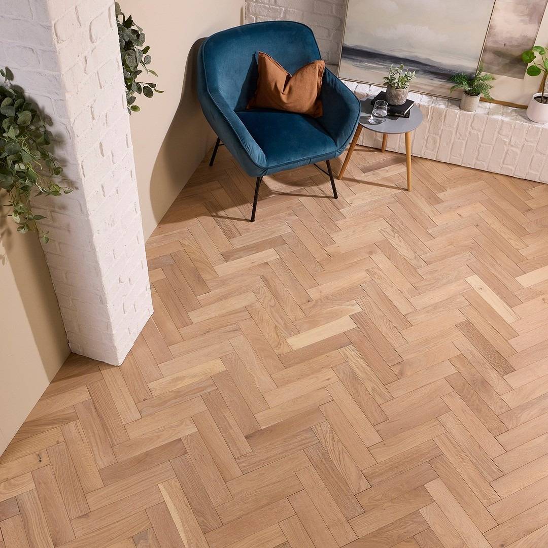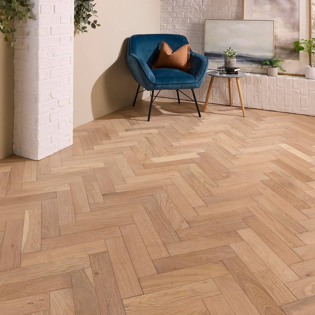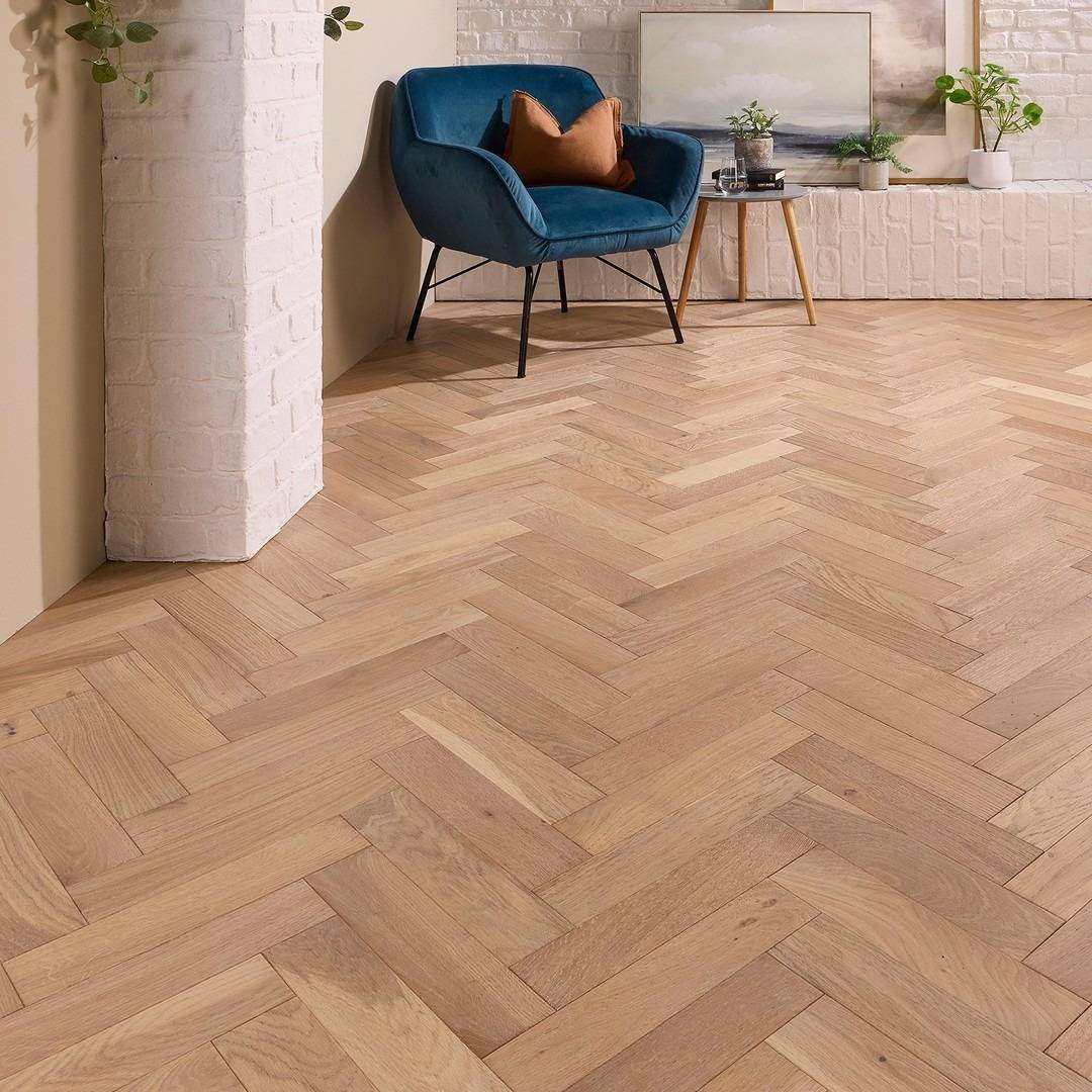 How to install Herringbone Parquet Engineered Wood Flooring 18mm Deep Brushed White Oiled