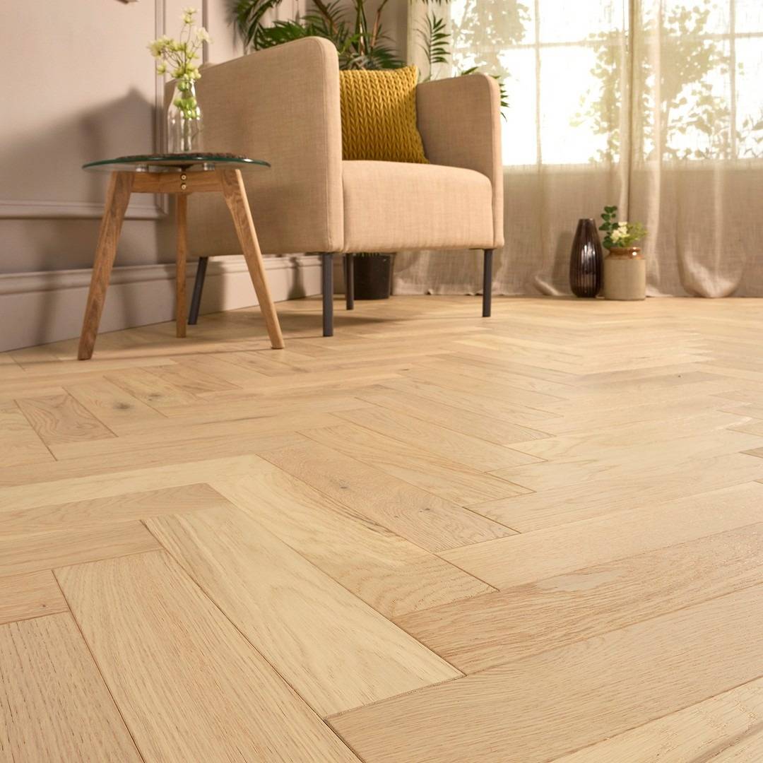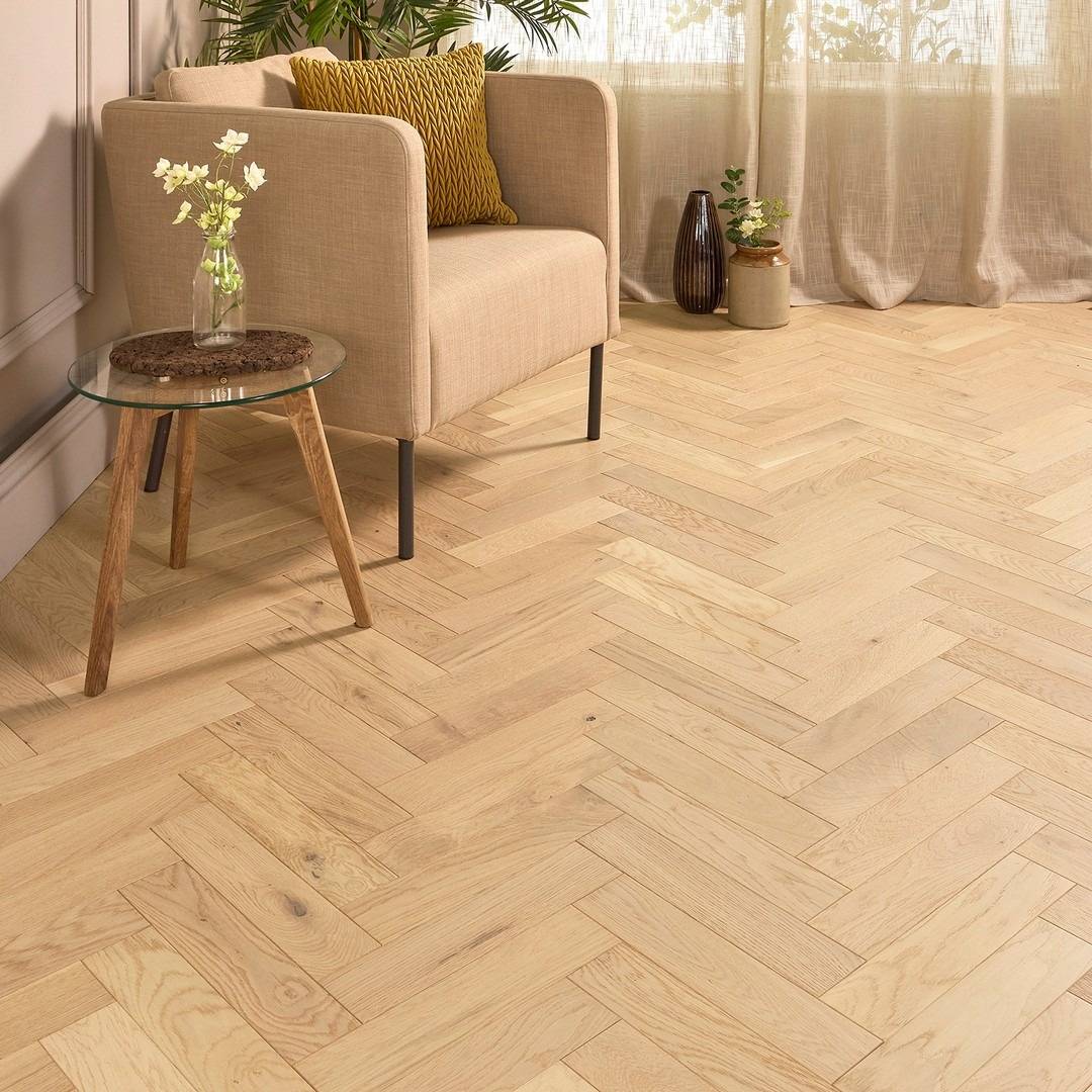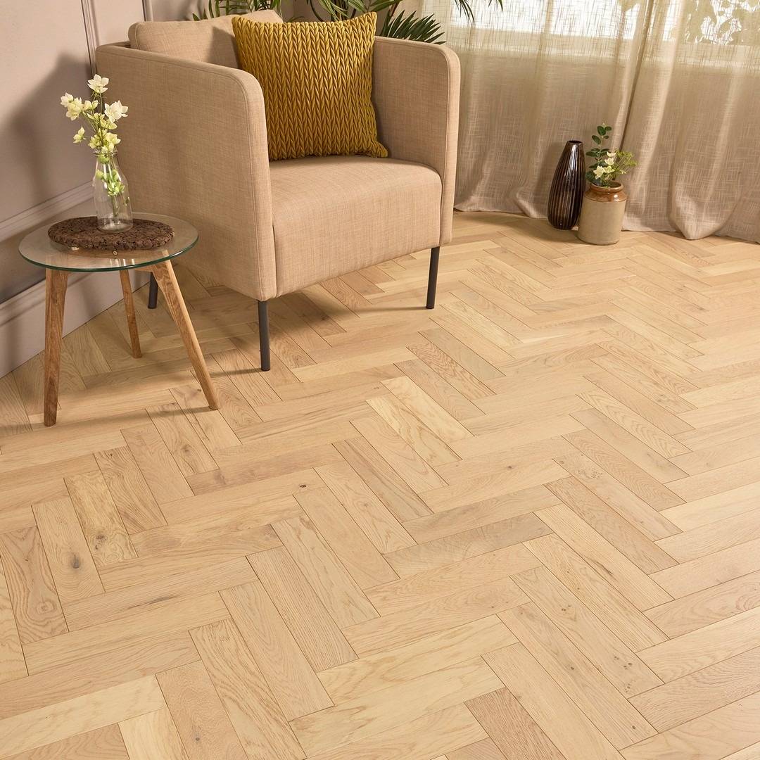Herringbone Parquet Engineered Wood Flooring 18mm Nude Brushed Matt Lacquered