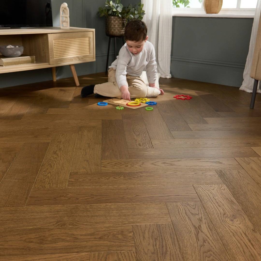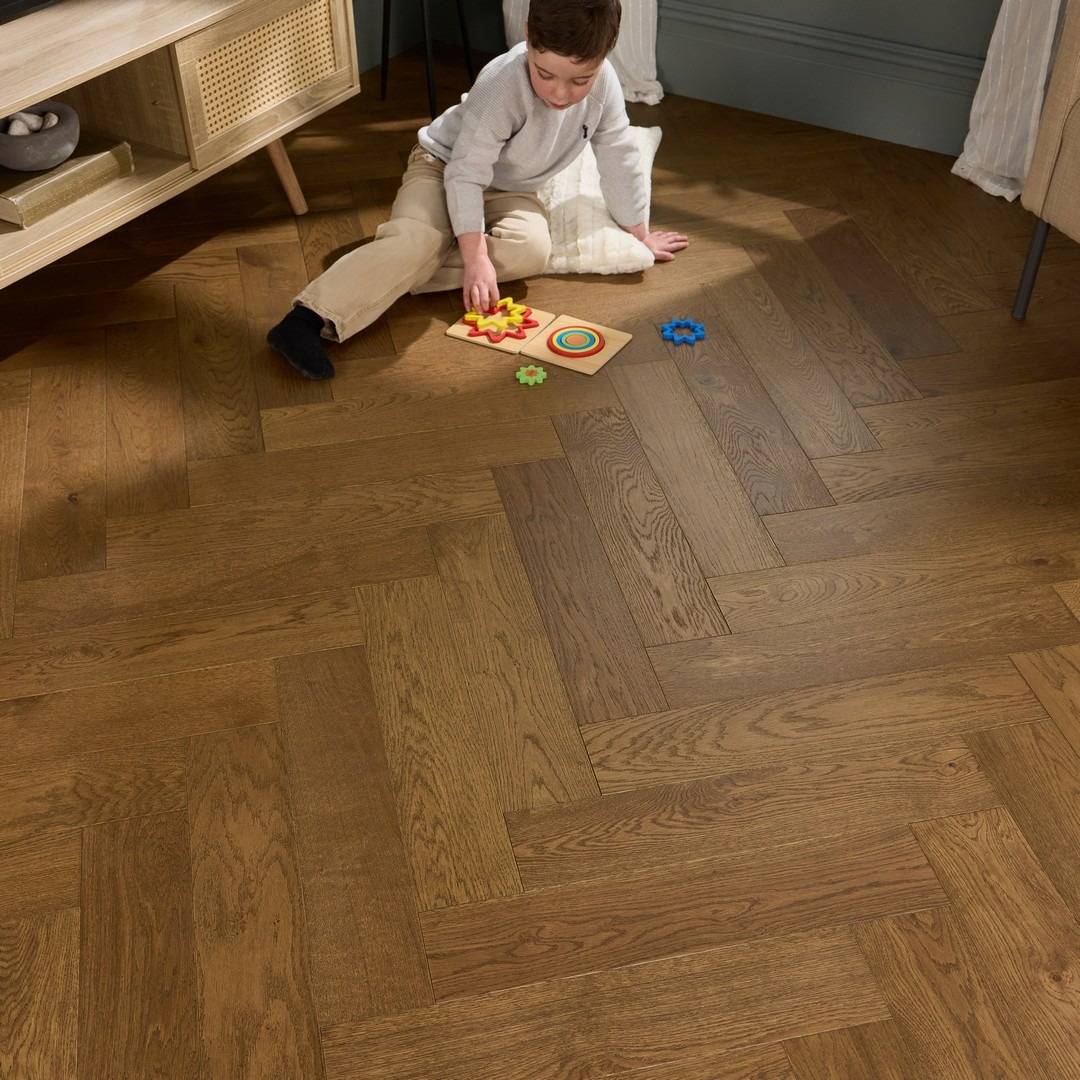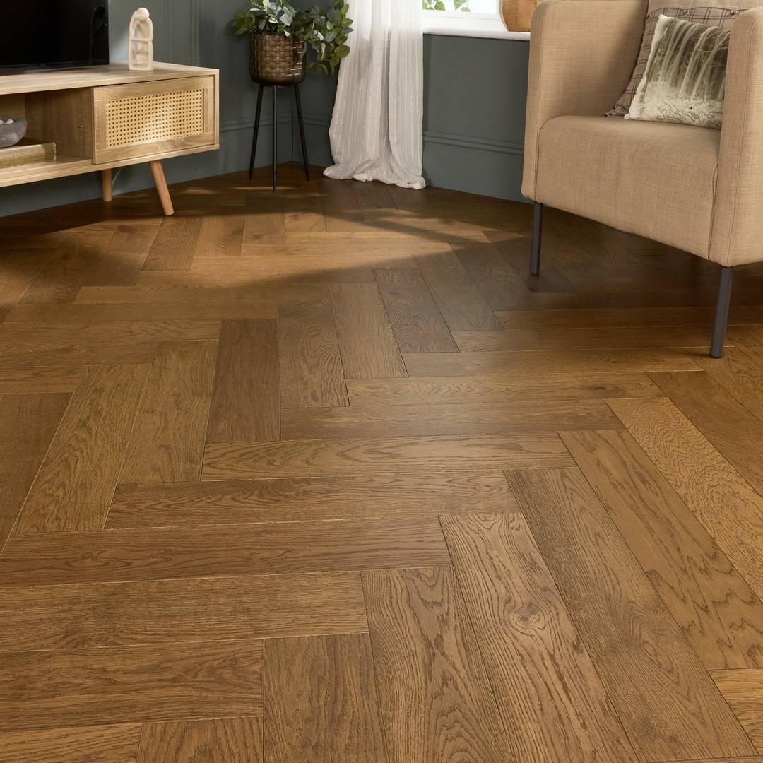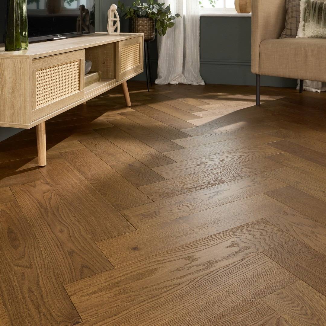 Herringbone Parquet Engineered Wood Flooring Brushed Matt Lacquer 14mm Harvest Oak