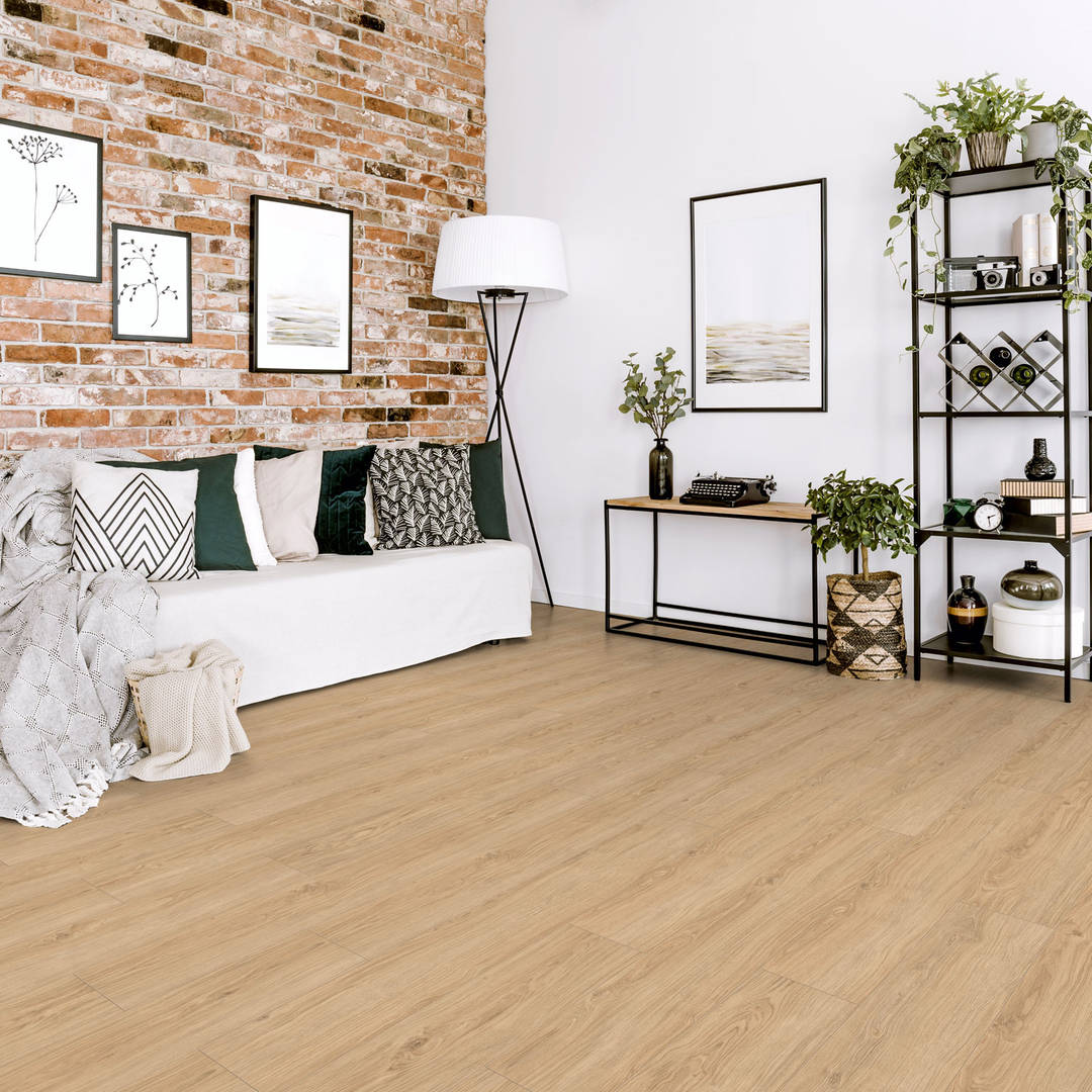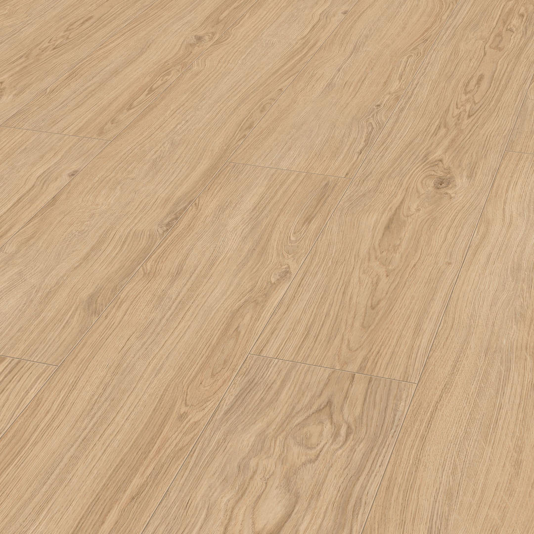 This is the peak of Oak coloured floors bursting with natural features in a lighter toned décor and with a registered embossed surface where the grain pattern contours on to the surface. Featuring a 5G click installation system for a more positive and faster fitting you’ll be saving time and that means saving money, suitable for use with underfloor heating this heavy domestic rated laminate is ideal for a lounge or hallway and is also warrantied for commercial use with a 5 year guarantee. Each pack contains 8 planks covering up to 2.131m2, take a look and order up a free sample as soon as possible we don’t think you’ll be disappointed.