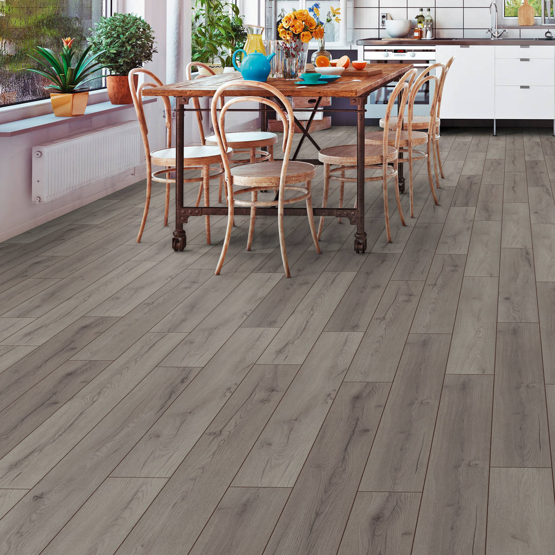 Find out moreKey Features of our Prestige Oak Grey 8mm V-Groove Laminate Flooring 4175