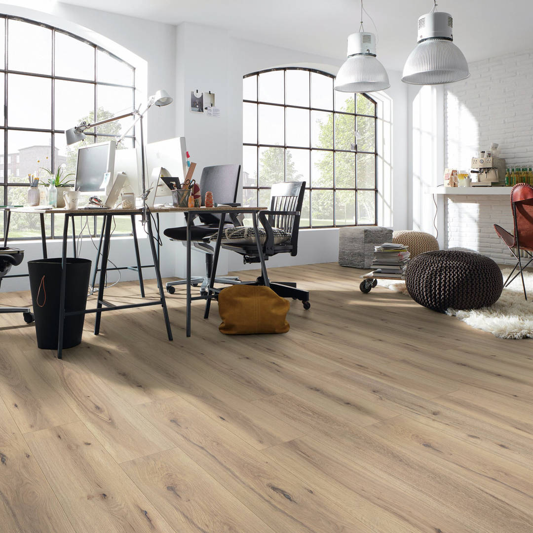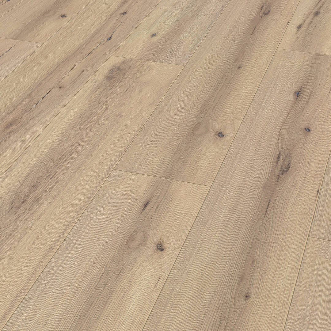 A very heavy duty rustic look laminate floor in the Prestige Plus range, the phoenix oak offers a lighter medium tone with plenty of character in the wood grain. This is on lightweight laminate and amongst the strongest we sell rated at AC5 its offered with a 5 year commercial warranty, but this isnt just for the office or work it will look after any busy family home. Packed full of features including a drop lock fitting system and a 4 way bevel edge its tough surface is finished with a texture to make more authentic, when you need a floor to perform look no further and secure a sample today.